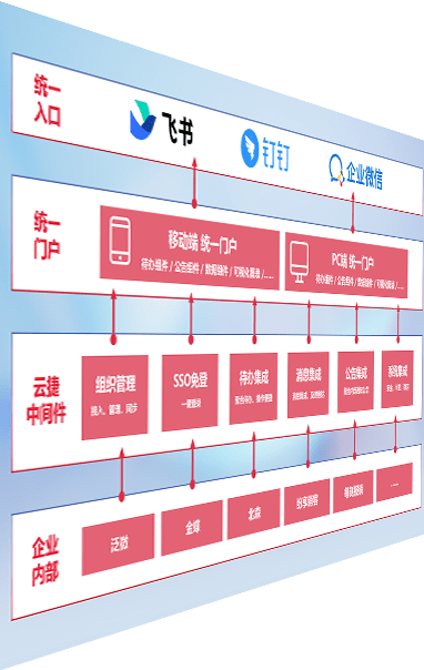 对协作平台提供支持服务,,支持企业应用与协作平台对接,,,包含组织同步、、、消息集成、、、、待办集成等。。支持目前主流的协作平台:钉钉、、、企微和飞书。。